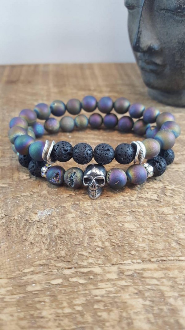 Mala Beads, Mala Bead Bracelets,Agate Bracelet Stack, Skull Bracelet, Lava Stone Bracelet,...