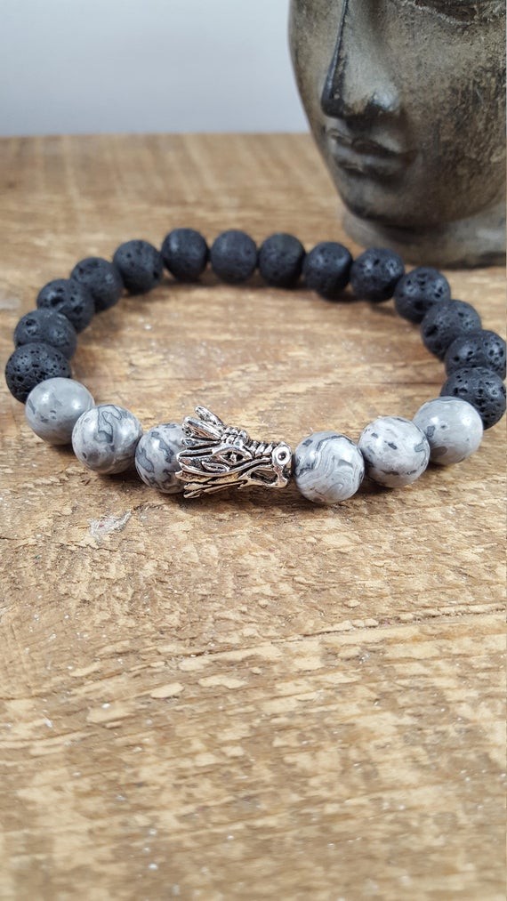 Mala Beads, Men's Mala Bead Bracelet, Men's Jasper Bracelet, Men's Essential Oil Diffuser Bracelet,...