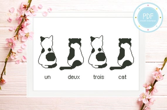 French Cats Counting Cute Animal Cross Stitch Patterns PDF Instant Download
