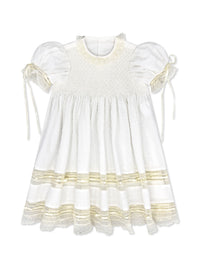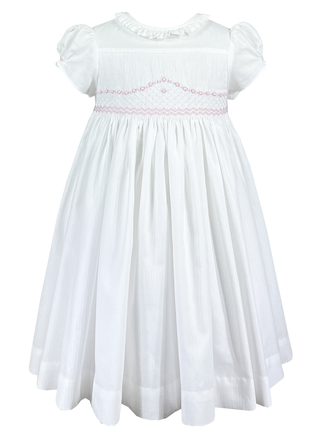 Heirloom White Amandine Dress with Pink Tiara smocking