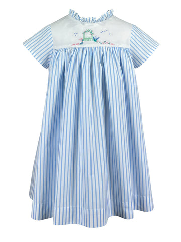 Blue and White Summer Stripes Dress - Arbor Embroidery