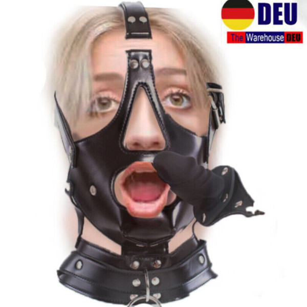 Pu-leder Kopfhaube Kopfmaske mit offenem Mundknebel aus Silikon Bondage BDSM |