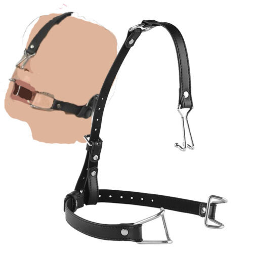 Metall Kopf-Geschirr mit Nasenhaken* Bondage Fetisch Öffnen Mundknebel BDSM |