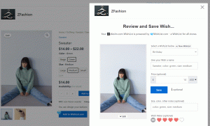 | After adding to the WishList, users can edit the Wish, share the Wish, view their WishList, or continue shopping | |||
