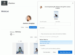 | Gift buyers provide their name and email address when reserving a gift off a WishList | |||