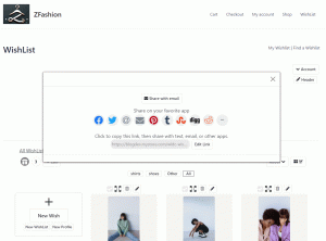 | Configurable Share WishList button that supports 9 popular social media sites, by email, and by link | |||