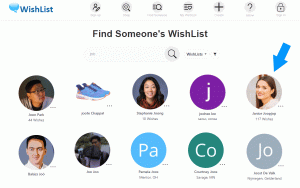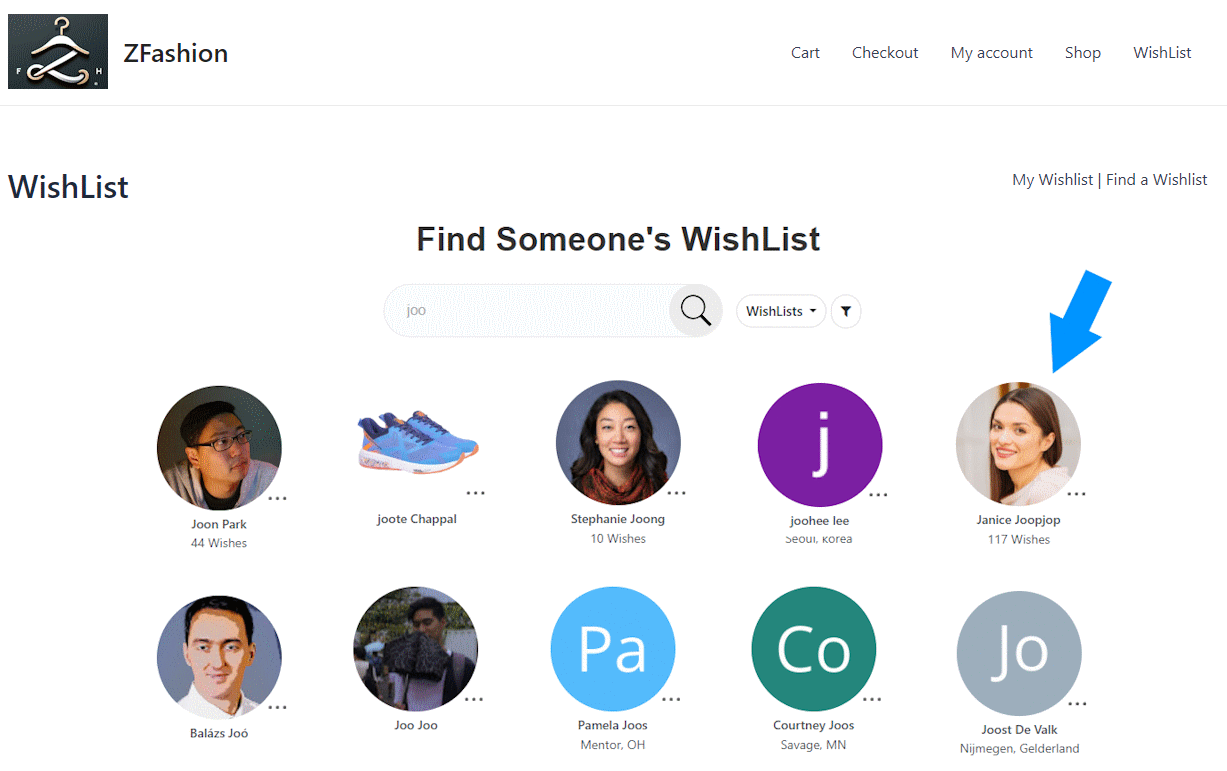| Find a WishList search shows WishList creators' name, profile picture, and state for easy identification | |||