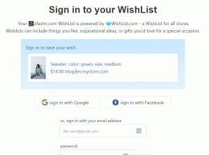 | Easy WishList login with Google, Facebook, and Apple to encourage account creation and increase customer acquisition | |||
