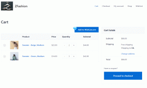 | Add to WishList button on the cart page, with choice of location, including hidden | |||